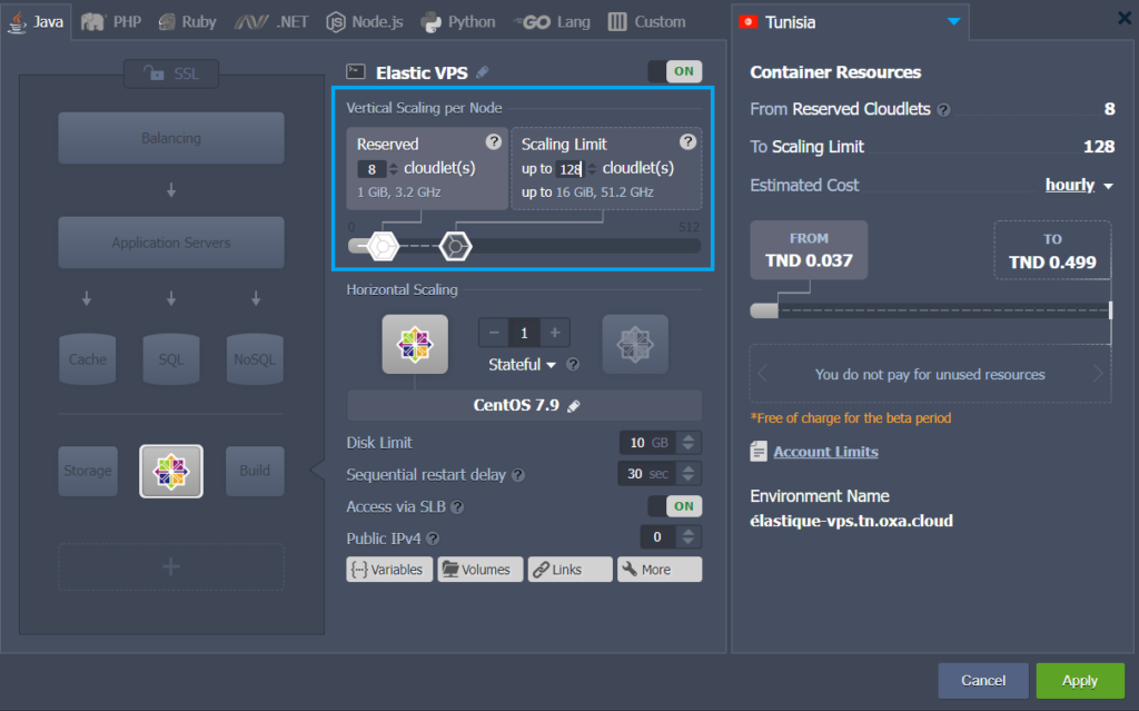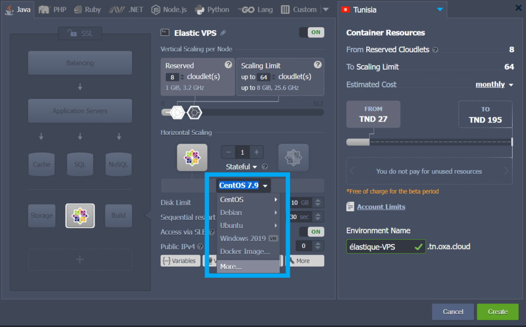 Ainsi, pour héberger et configurer votre Elastic VPS dans Oxacloud PaaS, suivez ces instructions pour :