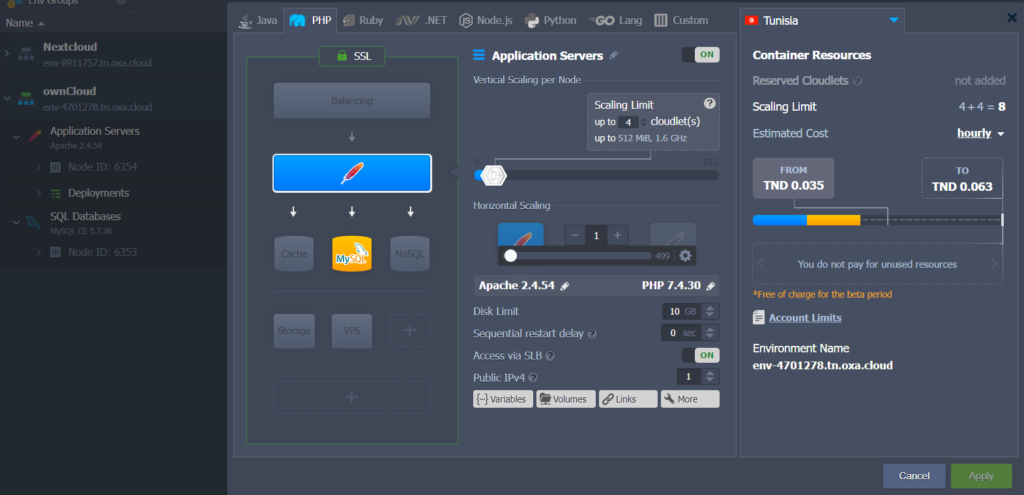 - Définir les ressources de votre environnement OwnCloud selon vos besoins